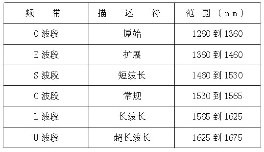 如下表所示,激光器在接近紅外范圍的“窗口”中產(chǎn)生光。窗口是為光學(xué)傳輸而優(yōu)化的紅外范圍。為了闡明光纖系統(tǒng)所用的術(shù)語,ITU最近定義了下列光譜帶。這些定義的目的僅僅是為了分類。