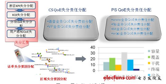 通過用戶感知指標(biāo)體系的構(gòu)建,我們可以對(duì)用戶體驗(yàn)進(jìn)行精準(zhǔn)的量化,從而為我們進(jìn)行用戶感知度的提升奠定了基礎(chǔ)。在這個(gè)基礎(chǔ)上,大唐移動(dòng)針對(duì)用戶感知體系建立了失分要因分配體系。簡(jiǎn)言之,分析業(yè)務(wù)過程是為了進(jìn)行對(duì)應(yīng)優(yōu)化,失分要因分配體系就是通過對(duì)話單進(jìn)行評(píng)分,找出導(dǎo)致用戶感知下降的關(guān)鍵因素。