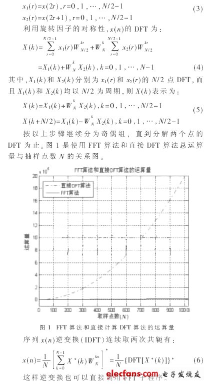 在數(shù)字信號處理中,離散傅里葉變換(DFT)是常用的變換方法,它在各種數(shù)字信號處理系統(tǒng)中扮演著重要的角色??焖俑道锶~變換(FFT)[1-2]是離散傅里葉變換的快速算法,它是根據(jù)離散傅里葉變換的奇、偶、虛、實等特性,對離散傅里葉變換的算法進(jìn)行改進(jìn)獲得的,兩者都是為了將信號變換到頻域并進(jìn)行相應(yīng)的頻譜分析。對于實時性要求很強(qiáng)的信號處理來說,運(yùn)算速度對整個處理的影響是顯而易見的。因為FFT擁有很高的運(yùn)算能力,使其在無線通信和數(shù)字通信、高速圖像處理、匹配濾波等領(lǐng)域得到極為廣泛的應(yīng)用。