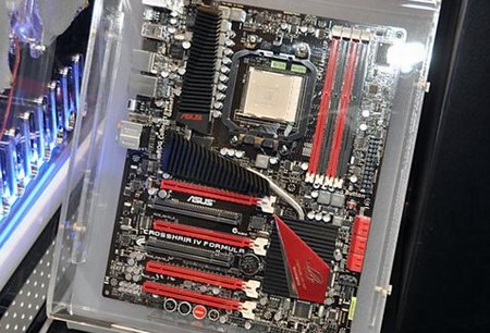 華碩ROG Crosshair IV Extreme:四塊Radeon HD 5870運(yùn)行中。