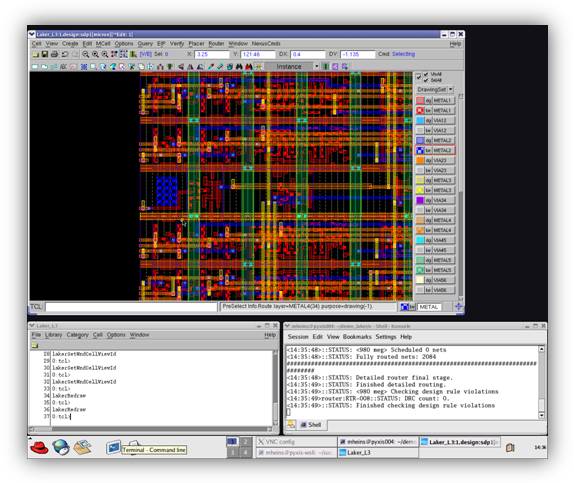 運(yùn)用OA-RTM,Pyxis Technology的全新高效能定制繞線器能夠在Laker定制版圖環(huán)境中作業(yè)。這個(gè)極大容量定制數(shù)字繞線器已經(jīng)通過(guò)客戶驗(yàn)證,能夠在45nm和以下制程建立DRC-correct、DFM-aware的繞線;能夠執(zhí)行所有階層的繞線而且是漸進(jìn)式的,這表示,不必改變手工建立的既有關(guān)鍵網(wǎng)絡(luò)。執(zhí)行定制IC版圖系統(tǒng)時(shí),設(shè)計(jì)人員能夠選擇芯片面積,并且讓整合式繞線器在這個(gè)限制條件下執(zhí)行所有網(wǎng)絡(luò)的繞線。強(qiáng)迫特定繞線通路的端口以及障礙(blockages)、變更與固定和既有的繞線全都由繞線器來(lái)辨識(shí),不必?cái)?shù)據(jù)轉(zhuǎn)換或者將數(shù)據(jù)儲(chǔ)存到磁盤。