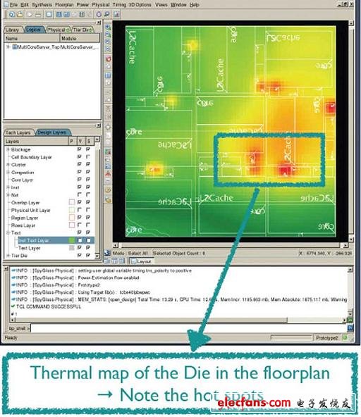圖1:Atrenta公司的工具可以很早就估計(jì)功耗;此處指出設(shè)計(jì)週期開始之初的潛在熱點(diǎn)。