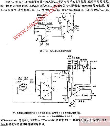 醫(yī)學(xué)遙測用隔離放大器電路圖