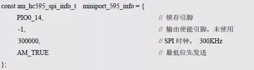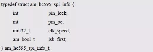 定義am_hc595_spi_dev_t 類型(am_hc595_spi.h)實例如下: