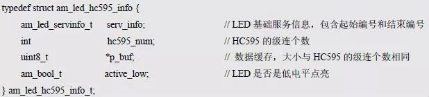 定義am_led_hc595_dev_t 類型(am_led_hc595.h)實例如下: