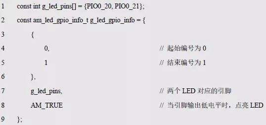 定義am_led_gpio_dev_t 類型(am_led_gpio.h)實例如下: