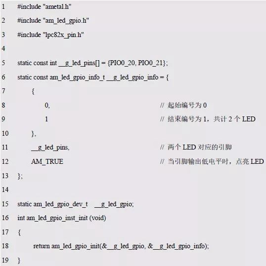 程序清單7.18 實例初始化函數范例程序(am_hwconf_miniport_led.c)