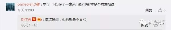 有網(wǎng)友在一加CEO劉作虎微博下評(píng)論:“寧可下巴多個(gè)一毫米,像v10那樣多個(gè)前置指紋”,劉作虎回應(yīng)稱:“一加5T做過(guò)前置指紋的模型,但是使用后不喜歡”。