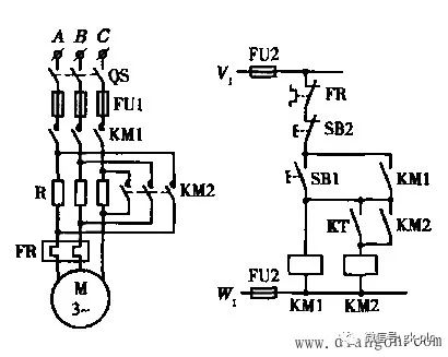 在排除電器故障時,經(jīng)過直觀檢查后沒有找到故障點而手下也沒有適當(dāng)?shù)膬x表進(jìn)行測量,可用一絕緣棒將有關(guān)繼電器、接觸器、電磁鐵等用外力強(qiáng)行按下,使其常開觸點閉合,然后觀察電器部分或機(jī)械部分出現(xiàn)的各種現(xiàn)象,如電動機(jī)從不轉(zhuǎn)到轉(zhuǎn)動,設(shè)備相應(yīng)的部分從不動到正常運(yùn)行等。①檢查一條回路的故障:在異步電動機(jī)控制電路(圖3)中,若按下起動按鈕SB1,接觸器KM1不吸合,可用一細(xì)絕緣棒或絕緣良好的螺絲刀(注意手不能碰金屬部分),從接觸器滅弧罩的中間孔(小型接觸器用兩絕緣棒對準(zhǔn)兩側(cè)的觸點支架)快速按下然后迅速松開,可能有如下情況出現(xiàn):a、電動機(jī)啟動,接觸器不再釋放,說明啟動按鈕SB1接觸不良。b、強(qiáng)迫閉合時,電動機(jī)不轉(zhuǎn)但有嗡嗡的聲音,松開時看到三個觸點都有火花,且亮度均勻。其原因是電動機(jī)過載或輔助電路中的熱繼電器FR常閉觸點跳開。C、強(qiáng)迫閉合時,電動機(jī)運(yùn)轉(zhuǎn)正常,松開后電動機(jī)停轉(zhuǎn),同時接觸器也隨之跳開,一般是輔助電路中的熔斷器FU熔斷或停止、啟動按鈕接觸不良。d、強(qiáng)迫閉合時電動機(jī)不轉(zhuǎn),有嗡嗡聲,松開時接觸器的主觸點只有兩觸點有火花。說明電動機(jī)主電路一相斷路。接觸器一主觸點接觸不良。②檢查多支路自動控制電路的故障:在多支路自動控制降壓啟動電路(圖6),啟動時,定子繞組上串聯(lián)電阻R,限制了啟動電流。在電動機(jī)上升到一定數(shù)值時,時間繼電器KT動作,常開觸點閉合,接通KM2電路,啟動電阻R自動短接,電動機(jī)正常運(yùn)行。如果按下啟動按鈕SB1,接觸器不吸合,可將KM1強(qiáng)迫閉合,松開后看KM1是否保持在吸合位置,電動機(jī)在強(qiáng)迫閉合瞬間是否啟動。如果KM1隨絕緣棒松開而釋放,但電動機(jī)轉(zhuǎn)動了,則故障在停止按鈕SB2熱繼電器FR觸點或KM1本身。如電動機(jī)不轉(zhuǎn),故障在主電路熔斷器、電源無電壓等。如KMI不再釋放,電動機(jī)正常運(yùn)轉(zhuǎn),故障在啟動按鈕SBl和KM1的自鎖觸點。