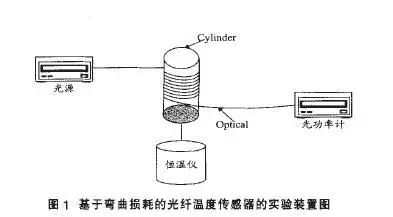 基于彎曲損耗的光纖溫度傳感器利用硅纖芯和塑料包層折射率差隨溫度變化引起光纖孔徑的變化、光纖的突然彎曲引起的局部孔徑的變化的原理測(cè)量溫度。烏克蘭采用EBOC生產(chǎn)的多模階躍塑料包層硅纖芯光纖HCN~H,已做出基于彎曲損耗的光纖溫度傳感器,其測(cè)溫范圍一30℃~70℃,靈敏度達(dá)到O.5℃。