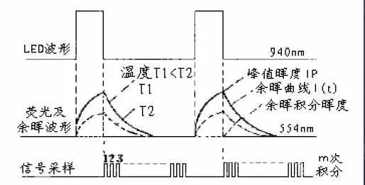 所謂光致發(fā)光是一種光發(fā)射現(xiàn)象,就是當(dāng)材料由于受紫外、可見光或紅外區(qū)的光激發(fā),所產(chǎn)生的發(fā)光現(xiàn)象。出射的熒光參數(shù)與溫度有一一對(duì)應(yīng)關(guān)系,通過檢測(cè)其熒光強(qiáng)度或熒光壽命來得到所需的溫度的。