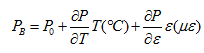 實(shí)驗(yàn)發(fā)現(xiàn),布里淵功率也隨溫度和應(yīng)變而變化,布里淵功率隨溫度的上升而線性增加,隨應(yīng)變?cè)黾佣€性下降。因此布里淵功率也可表示為: