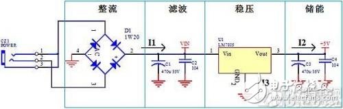 從圖上可知,線性電源有整流、濾波、穩(wěn)壓、儲能等功能元件組成,同時,一般用的線性電源為串聯(lián)穩(wěn)壓電源,輸出電流等于輸入電流,I1=I2+I3,I3是參考端,電流很小,因此I1≈I3。我們?yōu)槭裁匆v電流,是因為PCB設(shè)計時,每條線的寬度不是隨便設(shè)的,是要根據(jù)原理圖里元件節(jié)點間的電流大小來確定的(請查《PCB設(shè)計銅鉑厚度、線寬和電流關(guān)系表》)。電流大小、電流流向要搞清楚,做板才恰到好處。