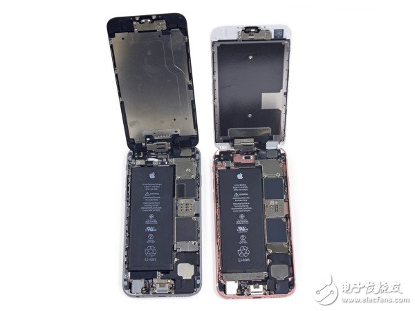 iPhone 6(左)與iPhone 6s(右)內(nèi)部對比