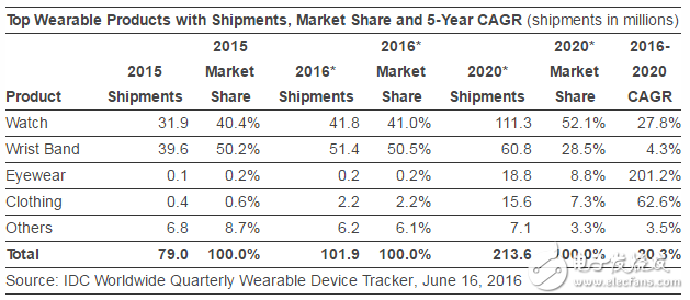去年IDC就已經(jīng)預(yù)測(cè),在2020年時(shí),智能手表的市場(chǎng)份額將會(huì)從2016年的41%增長(zhǎng)到52.1%,而智能手環(huán)則會(huì)從50.5%到2020年下降至28.5%。顯然在IDC看來(lái)未來(lái)的智能穿戴設(shè)備中智能手表的市場(chǎng)份額比重將越來(lái)越大,而智能手環(huán)的份額也將會(huì)被智能手表所蠶食。