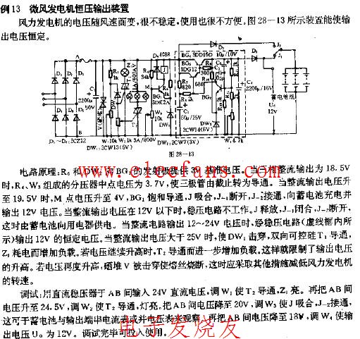 微風(fēng)發(fā)電機恒壓輸出裝置電路圖