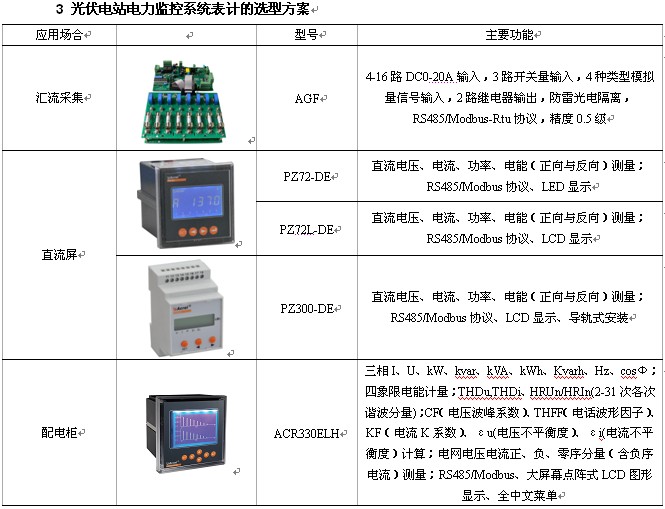 系列直流檢測儀表及ACR系列電力質(zhì)量分析儀,分別應(yīng)用于匯流箱、直流柜及交流柜中,并通過Acrel-3000 V8.0光伏電力監(jiān)控系統(tǒng)實現(xiàn)后臺集中監(jiān)控。