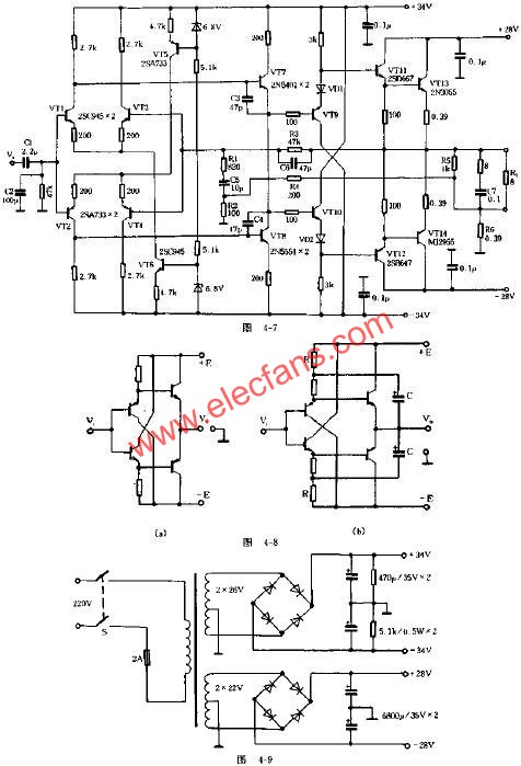 全互補(bǔ)功率放大器電路原理圖
