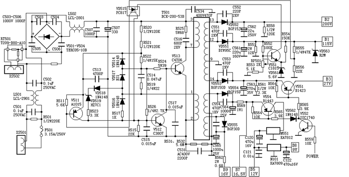 A3/A6機(jī)芯開(kāi)關(guān)電源具有結(jié)構(gòu)簡(jiǎn)單,經(jīng)濟(jì)實(shí)用等特點(diǎn),是彩色電視機(jī)用得最多的一種電源,它不但用于A3/A6機(jī)芯中,還廣泛用于新型數(shù)碼彩電中。目前康佳、長(zhǎng)虹、海信、廈華等品牌彩