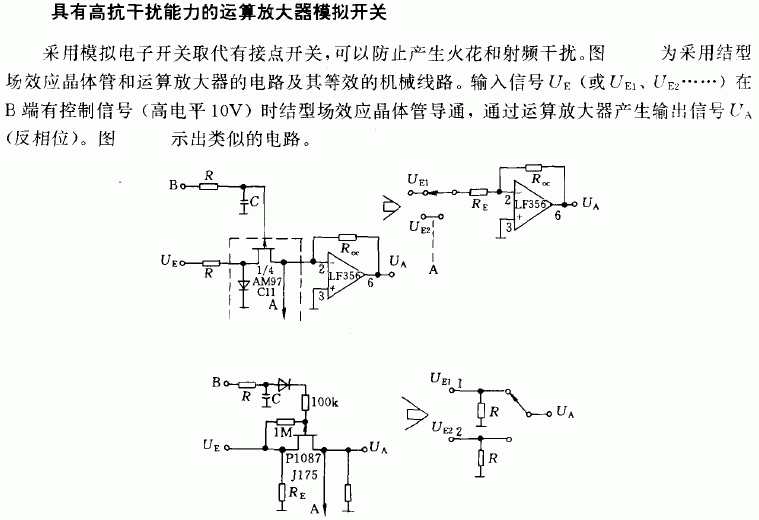 模擬開(kāi)關(guān)電路即對(duì)模擬信號(hào)進(jìn)行“通/斷”(ON/OFF)控制的電路,現(xiàn)在一般由晶體管(二極管、雙極型三極管、場(chǎng)效應(yīng)管等)作為開(kāi)關(guān)器件