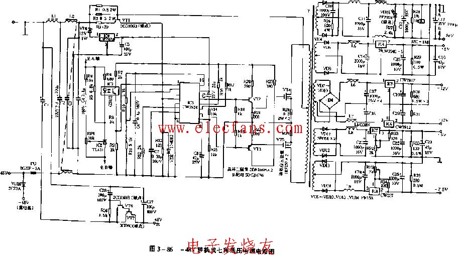 6034基于48V直流高頻開關(guān)電源簡單原理圖解