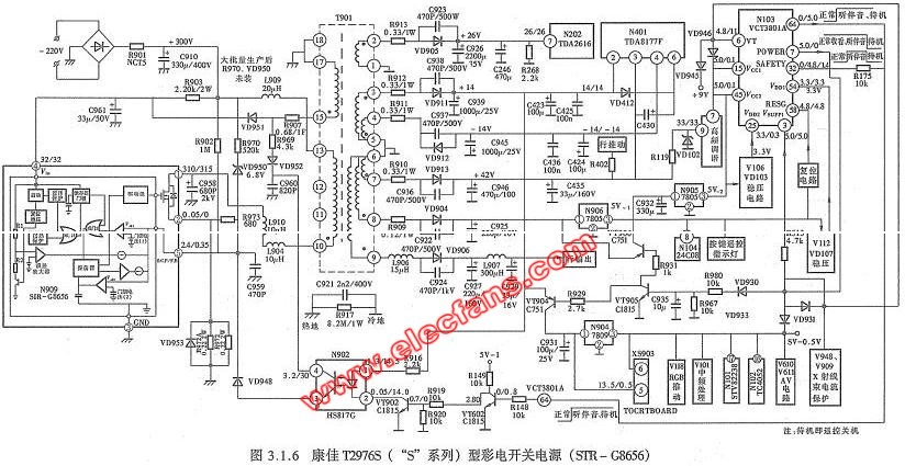 康佳T296S型彩電開(kāi)關(guān)電源電路圖(STR-G8656)