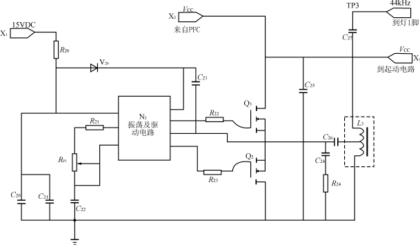 對(duì)高壓鈉燈電子鎮(zhèn)流器DC/AC變換器的工作原理做了說(shuō)明。分析了電子鎮(zhèn)流器負(fù)載電路在諧振點(diǎn)火階段和穩(wěn)態(tài)限流階段的
