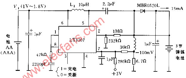 電子發(fā)燒友網(wǎng)>電子技術(shù)應(yīng)用>電路原理圖>電源>電源電路圖>LT1307構(gòu)成的恒流充電電路