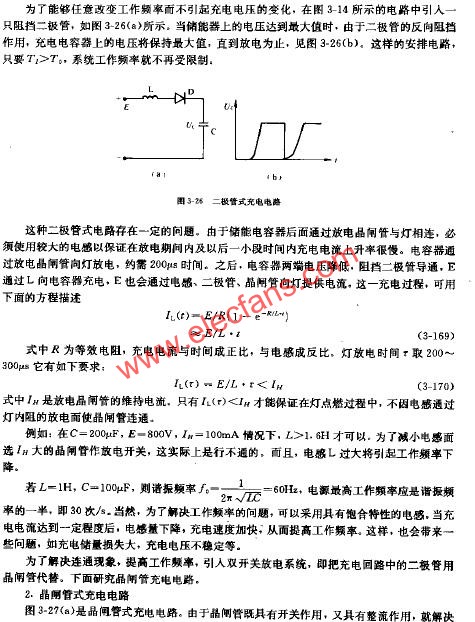 ?????? 為了能夠任意改變工作頻率而不引起充電電壓的變化,在圖3-14所示的電路中引入一只阻擋二極管。如圖3-26(a)所示。