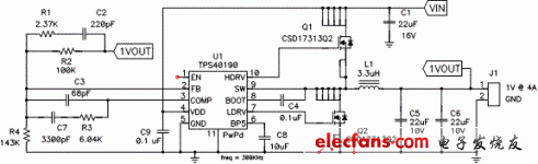 這是一個簡單的同步降壓轉(zhuǎn)換器,用于演示輸出電感中連續(xù)和非連續(xù)電流的負載瞬態(tài)響應(yīng)。在低至空載的負載狀態(tài)下,輸出電感電流都一直保持連續(xù),因為同步整流器允許電感電流在輕負載狀態(tài)下反向流動。只需用一個二極管替換底部 FET (Q2),電路便可轉(zhuǎn)為非連續(xù)。盡管本文介紹的是降壓拓撲結(jié)構(gòu)的區(qū)別,但您會注意到所有電源拓撲都有類似的響應(yīng)。