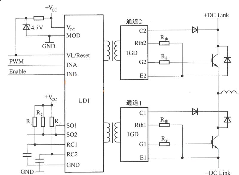 SCALE驅(qū)動(dòng)器的半橋接線電路