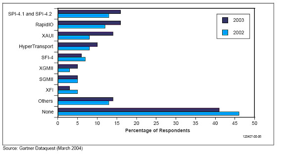 -2003年SPI-4.1和SPI-4.2使用的增加意味著在通信線路卡上標(biāo)準(zhǔn)接口應(yīng)用增長,使得專用和基于專用標(biāo)準(zhǔn)電路功能的結(jié)合更加靈活。