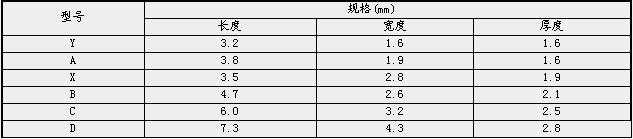 鉭質(zhì)電容已經(jīng)越來越多應(yīng)用于各種電子產(chǎn)品上,屬于比較貴重的零件,發(fā)展至今,也有了一個標(biāo)準(zhǔn)尺寸系列,用英文字母Y、A、X、B、C、D來代表。 其對應(yīng)關(guān)系如下表: