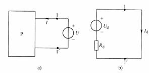 任一線性有源一端口網絡(如圖2-7-2(a)所示)對其余部分而言,可以等效為一個電壓源
