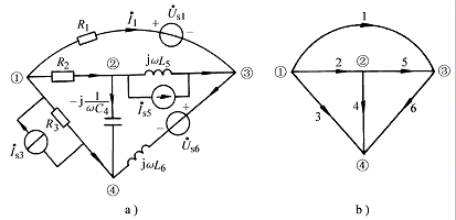 解: 電路的有向圖及參考方向見圖7-6-2b。選節(jié)點④為參考節(jié)點,則可寫出其關(guān)聯(lián)矩陣A為: