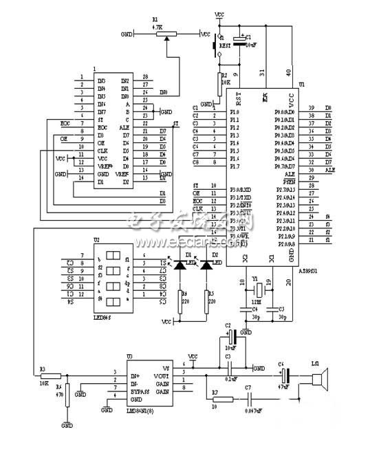 77 單片機(jī)在檢測(cè)和控制系統(tǒng)中得到廣泛的應(yīng)用, 溫度則是系統(tǒng)常需要測(cè)量、控制和保持的一個(gè)量。 本文從硬件和軟件兩方面介紹了AT89C2051單片機(jī)溫度控制系統(tǒng)的設(shè)計(jì),對(duì)硬件原理圖