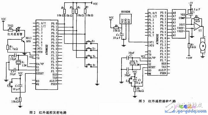 設(shè)計 如圖2所示,該圖為紅外遙控發(fā)射電路圖?! ↑c擊此處查看全部新聞圖片 在圖2中,單片機采用AT89C52,這是遙控電路的主芯片。ATMEL公司生產(chǎn)的AT89C52單片機采用高性能的靜態(tài)