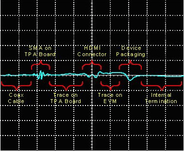 利用 TDR 看到的大量非連續(xù)性直接受到 TDR 使用的脈沖邊緣速率的影響。TDR 邊緣速率越快,出現(xiàn)的非連續(xù)性就會(huì)越多,并且阻抗峰值就越大。通過(guò) HDMI 規(guī)范,他們定義了邊緣速率(通常為 200ps)。圖 6 對(duì)該點(diǎn)進(jìn)行了描述。圖中的低線壓采用 30ps 邊緣速率,高線壓采用 200pf 濾波器。當(dāng)使用 200ps 邊緣速率濾波器時(shí),由出現(xiàn)在低線壓上的 TPA 電路板 SMA 產(chǎn)生的非連續(xù)性均為完全不可見(jiàn)。