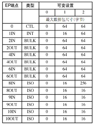 表1 缺省USB設(shè)備的 EP端點(diǎn)