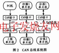 設(shè)計(jì)了多個(gè)CAN總線的通信節(jié)點(diǎn),通過PCI9810-CAN適配卡上的CAN總線,組成一個(gè)局域通信網(wǎng)絡(luò),實(shí)現(xiàn)了PC機(jī)對(duì)各個(gè)節(jié)點(diǎn)的監(jiān)控和通信以及節(jié)點(diǎn)間的自由通信。