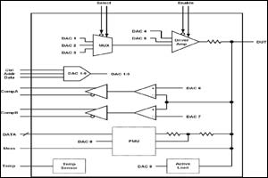 數(shù)模轉(zhuǎn)換器 (DAC) 生成模擬信號,其用于驅(qū)動被測試器件,并用于實現(xiàn)各種功能,如設(shè)置窗口比較器、PMU 以及有源負載水平等。12 位或 13 位的分辯率較常見,而未來產(chǎn)品則要求 16 位乃至更高的分辯率。由于可編程信號和電平數(shù)量較多,因此我們需要大量 DAC 來實現(xiàn)完整的測試解決方案。