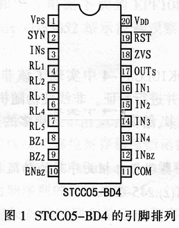 STCC05-BD4采用DIP-20封裝,引腳排列如圖1所示,引腳功能如表1所列。