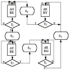 2.畫出交通燈控制器的ASM(Algorithmic State Machine,算法狀態(tài)機) |