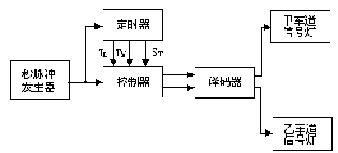 ???(4)甲車道紅燈亮,乙車道黃燈亮。表示甲車道禁止通行,乙車道上位過縣停車線的車輛停止通行,已過停車線的車輛停止通行,已過停車線的車輛繼續(xù)通行。黃燈亮足規(guī)定的時間間隔TY時,控制器發(fā)出狀態(tài)轉(zhuǎn)換信號ST,系統(tǒng)又轉(zhuǎn)換到第(1)種工作狀態(tài)。