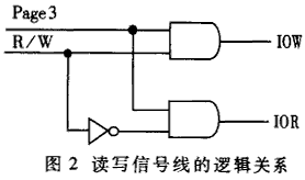 DSP的Page3和R/W信號用于選能網(wǎng)卡的讀寫信號IOR、IOW,實(shí)現(xiàn)的邏輯關(guān)系如圖2所示。