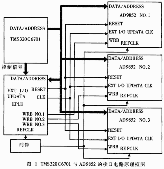 2 TMS320C6701與AD9852接口電路