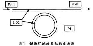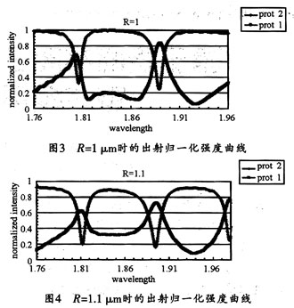 本文分析了基于表面等離子激元的可調(diào)諧共振環(huán)濾波器結(jié)構(gòu)原理,并分別對環(huán)半徑R為1.0μm和1.1 μm時(shí)進(jìn)行了仿真。