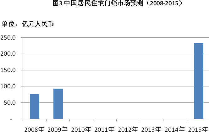 由于房地產(chǎn)市場的繁榮,2009年住宅門鎖市場的增長率達(dá)到20%,其中電子鎖的市場同比增漲超過25%。而2008年收到金融危機的影響,住宅門鎖市場年增長率不足10%。預(yù)計未來5年,電子鎖市場的增長速度將高于市場平均速度。