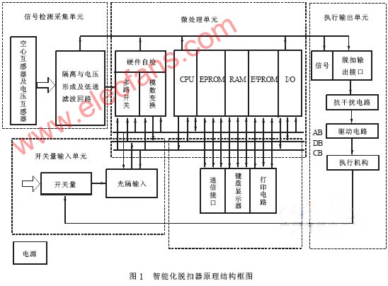 智能化斷路器中智能化技術(shù)的應(yīng)用核心是集保護(hù)、測(cè)量、監(jiān)控于一體的多功能脫扣器, 它主要由微處理器單元、信號(hào)檢測(cè)采集單元、開(kāi)關(guān)量輸入單元、顯示和鍵盤(pán)單元、執(zhí)行輸出單元、通信接口、電源等幾個(gè)部分組成。如圖1 所示?!?/P>