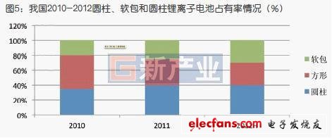 鋰離子電池根據(jù)形狀分類,有圓柱形、方形(鋼殼、鋁殼)、軟包(又稱聚合物鋰離子電池)三大類型。高工鋰電產(chǎn)業(yè)研究所統(tǒng)計(jì),2010年圓柱、方形、軟包的市場占有率分別為35%、45%和20%;然而2012年上半年的三者的占有率變?yōu)?0%、30%和30%.